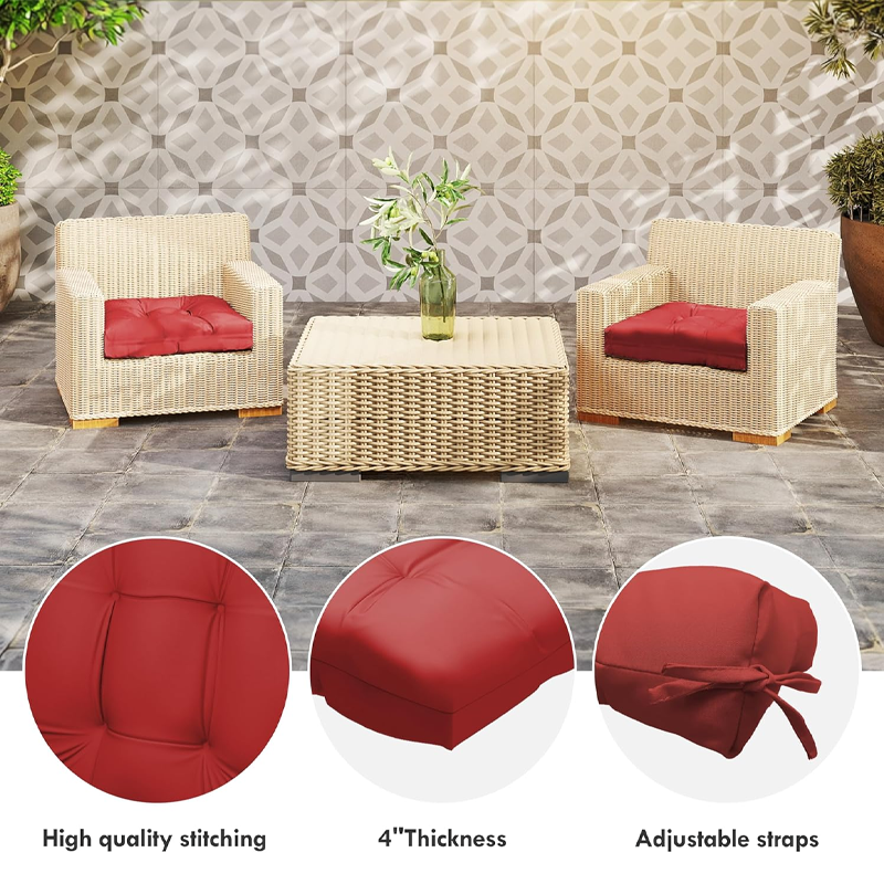 This product is a generic outdoor chair cushion set designed for patio or garden seating, offering padded comfort and basic weather resistance. It is suitable for standard outdoor furniture. It does not incorporate patented designs, licensed patterns, or trademarked elements.